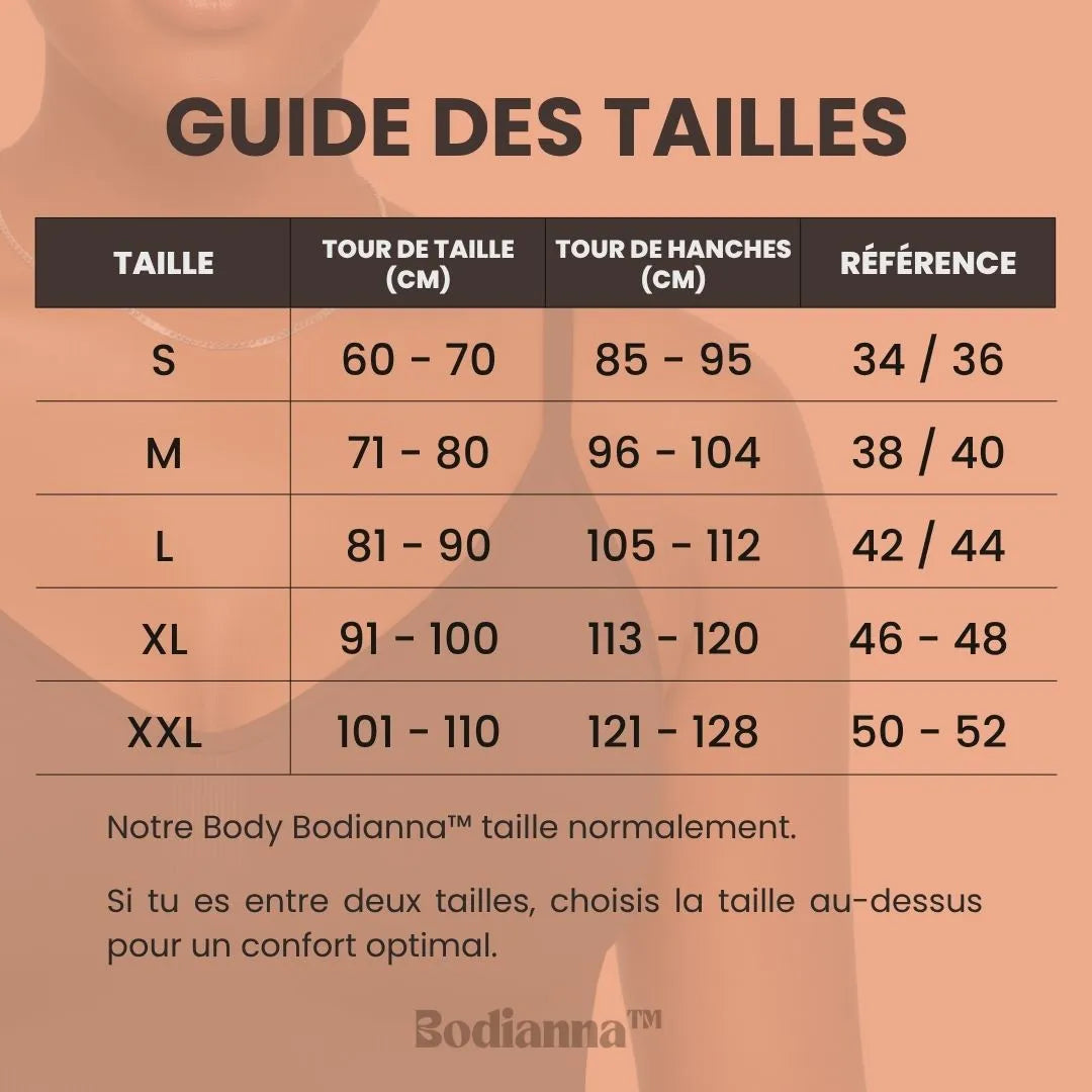 Le Body Bodianna™ est conçu avec une technologie de compression intelligente : il affine ta taille sans jamais t’étouffer.
