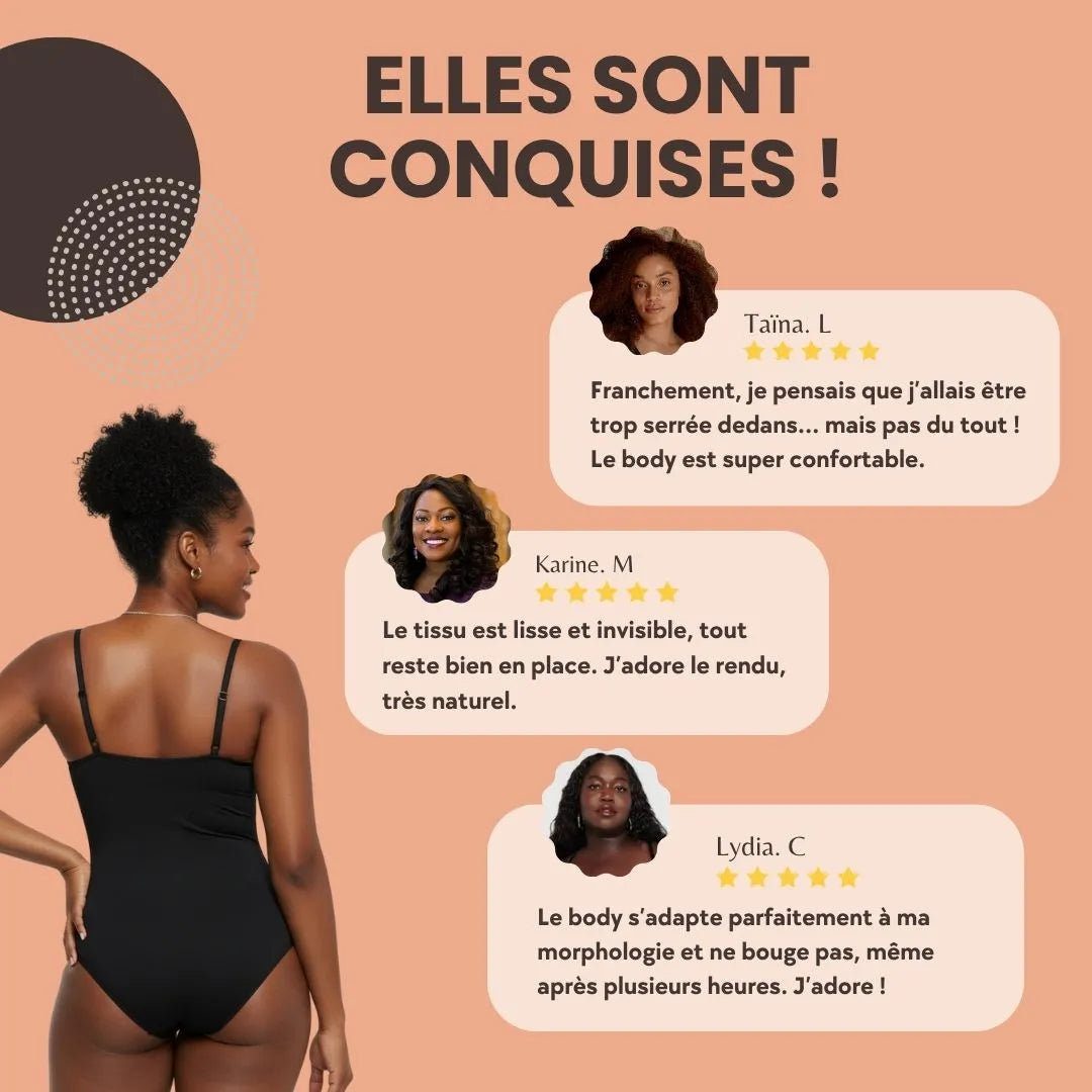 Le Body Bodianna™ est conçu avec une technologie de compression intelligente : il affine ta taille sans jamais t’étouffer.